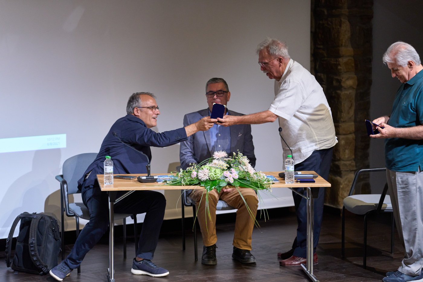 Μαζί με τον Μιχάλη Μπλέτσα ο επ. καθ. του ΕΚΠΑ Δημήτρης Κατσιάνης που αναπλήρωσε τον έτερο εισηγητή, τον υπουργό Ψηφιακής Διακυβέρνησης Δημήτρη Παπαστεργίου, που λόγω της έκτακτης συμμετοχής του στο Συμβούλιο Υπουργών της ΕΕ στο Λουξεμβούργο και, δεν κατόρθωσε πάρα τις προσπάθειες του να παραστεί στην εκδήλωση.